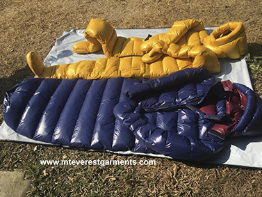 See the full line of down jackets pants, onepiece, sleeping bags and sleepsacks go to Mteverest Garments